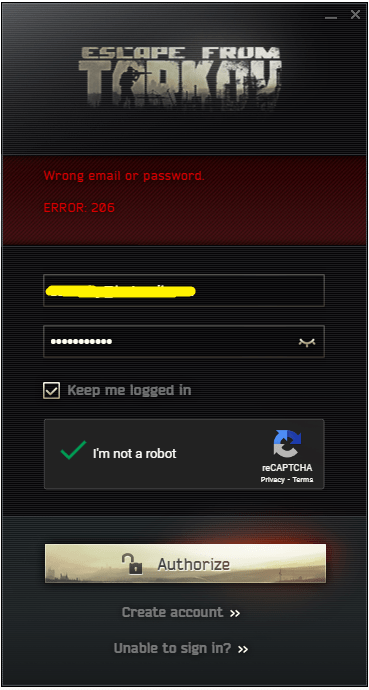 Bought the game earlier today and have been unable to log into the launcher as i keep getting error 206 have used both my username and email .